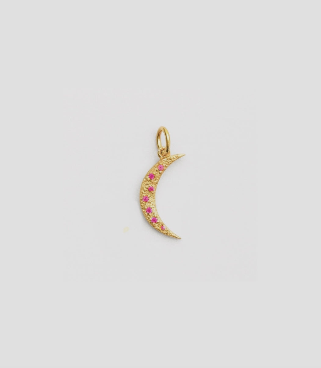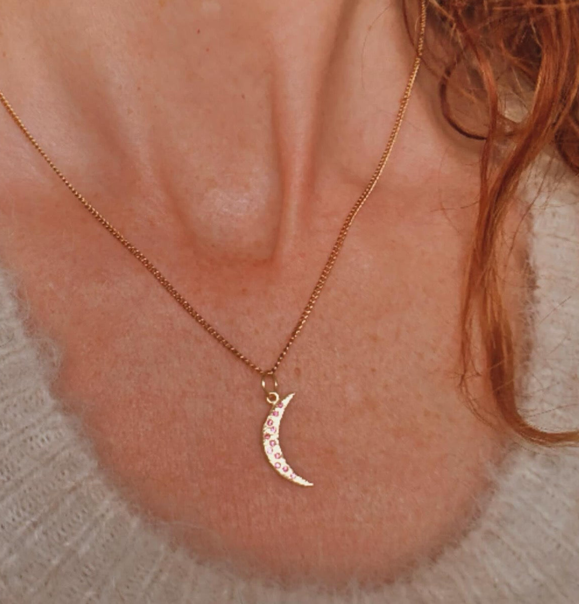 PINK SAPPHIRE MOON – 14K Gold Pendant