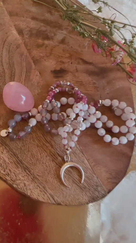 It is a Mala for new beginnings and is strongly connected to the lunar cycle. Like the moon, it reminds you that everything is part of a cycle of change. Let it support you on your new journey.