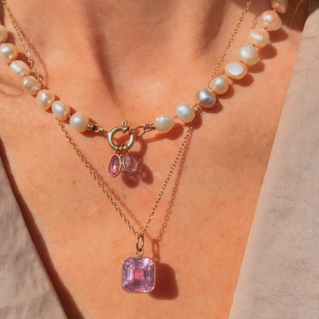 A collection of delicate pendants handcrafted with natural gemstones and fine gold or silver details.