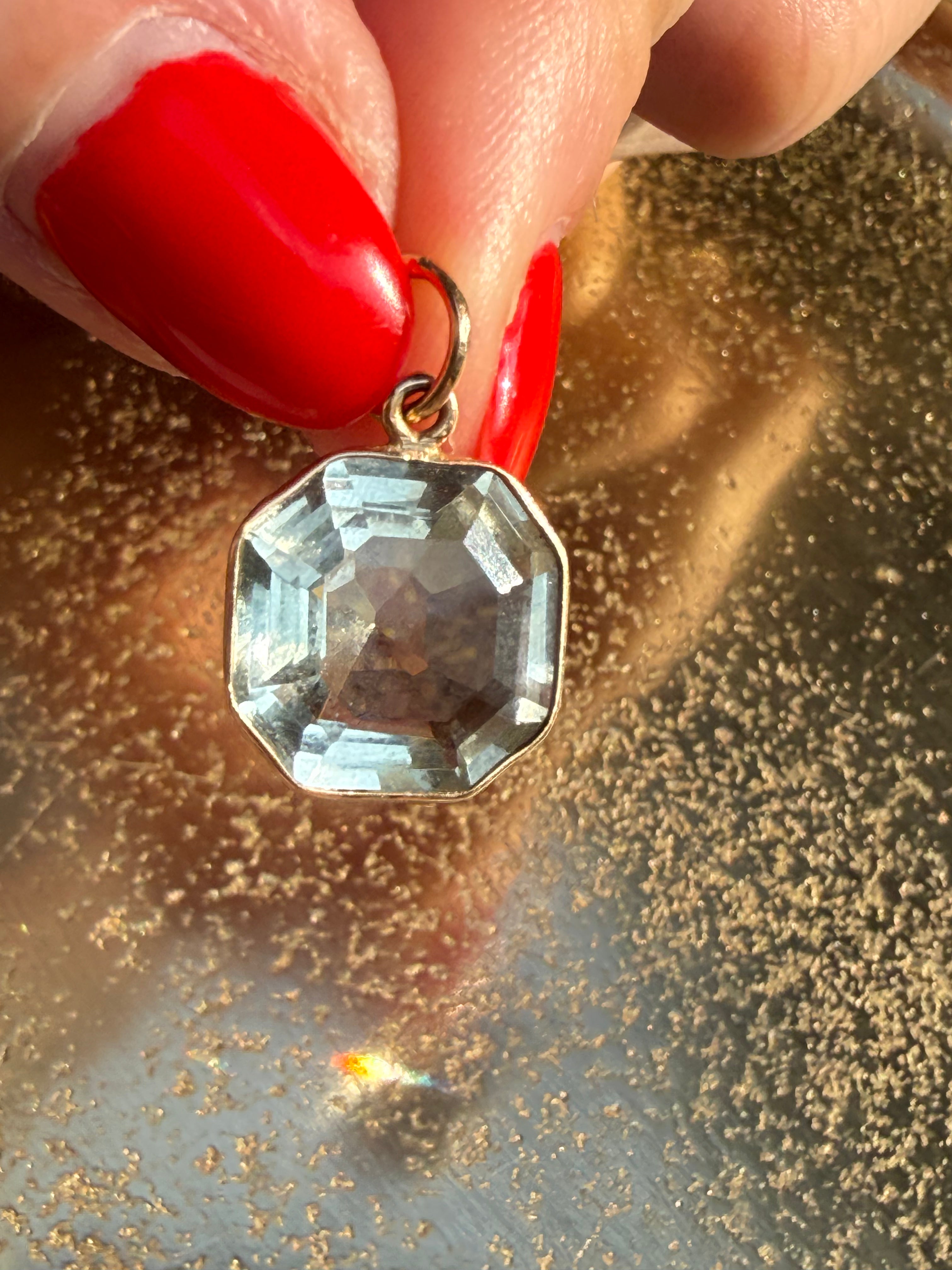 Precision-cut and set in solid 14 K yellow gold, the stone allows light to move gracefully through its translucent green hue. Designed to be worn alone or layered with hand-knotted gemstone necklaces, this pendant offers quiet radiance and effortless elegance.