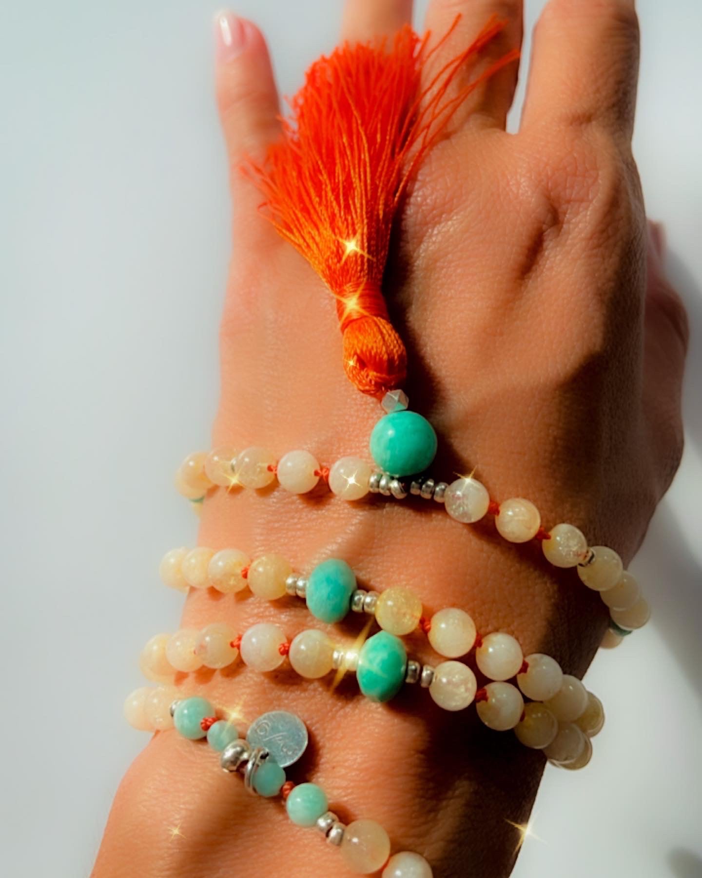 “Rising Sun” is a powerful cleanser and regenerator. Carrying the power of the sun, it is a cheerful Mala of abundance that teaches you how to manifest and attract prosperity and success in all good things.